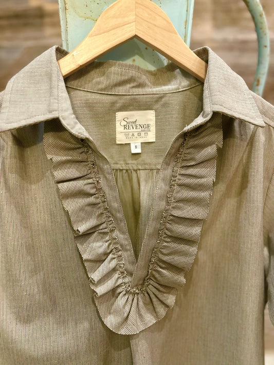 Ruffle Collar Shirt - Lurex Gold Stripe