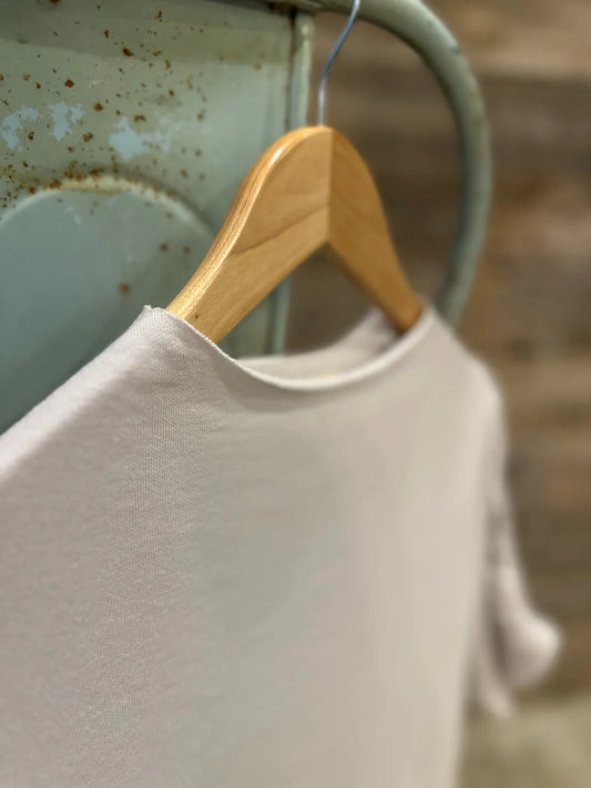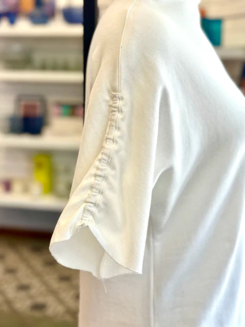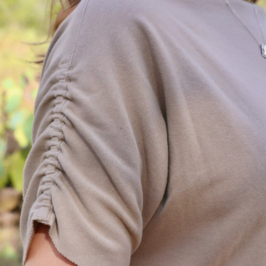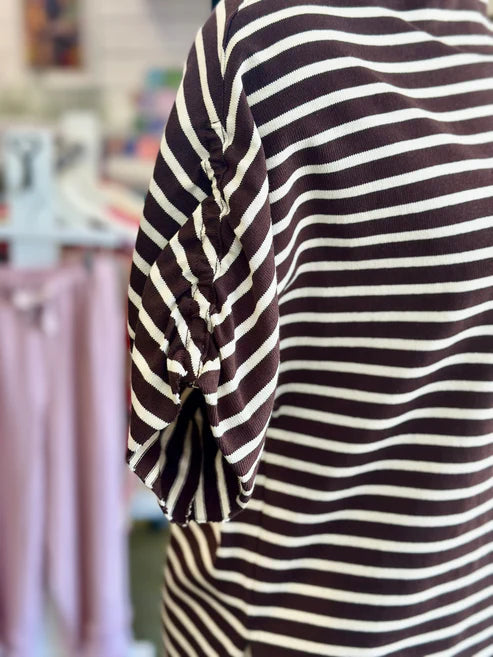 Knit Top with Puff Sleeve - Khaki/Tiny Stripe